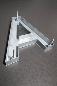A fixação por pino é um sistema prático e eficiente utilizado para a instalação de letras caixa e peças metálicas em fachadas e paredes. Consiste na soldagem de pinos na parte traseira da peça, que são encaixados em furos previamente feitos na superfície de fixação, garantindo alinhamento preciso e afastamento uniforme da parede.